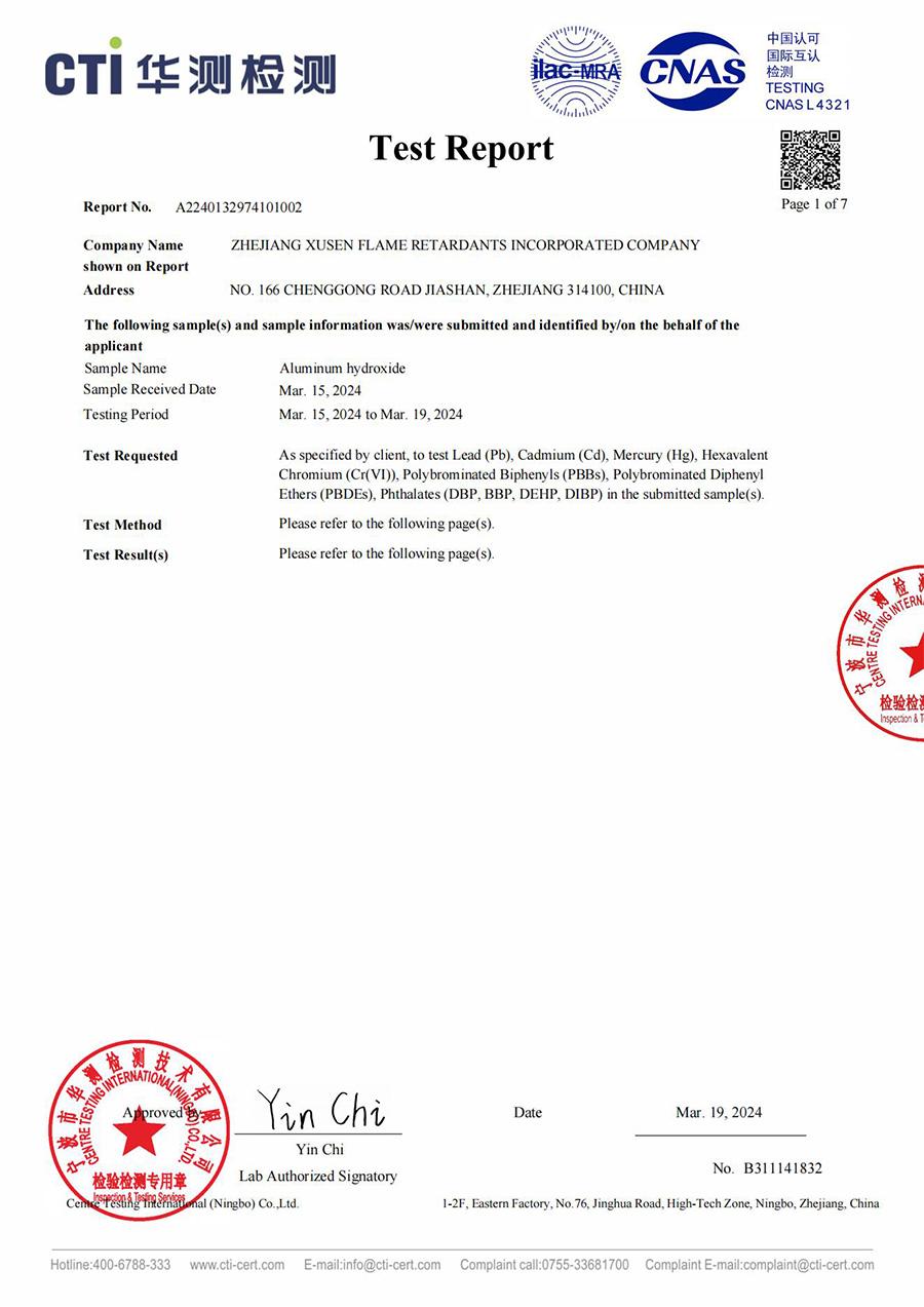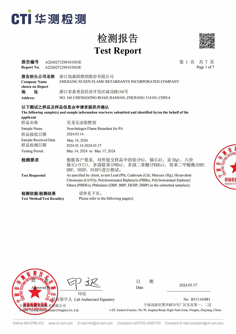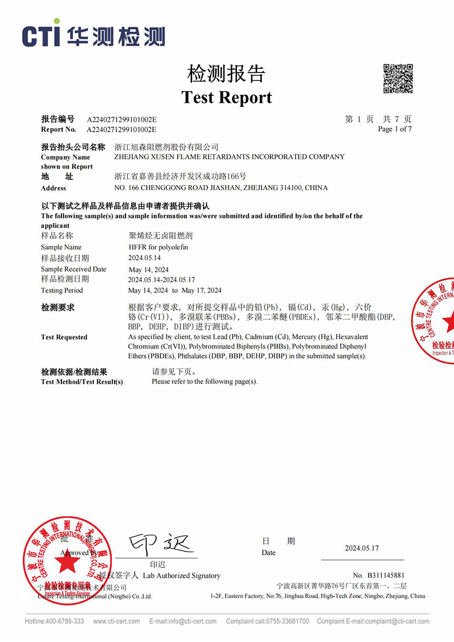 Retardante de llama para el informe de prueba de poliolefina ROHS