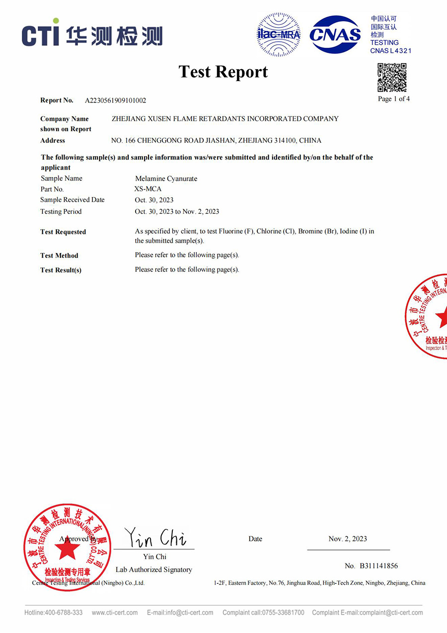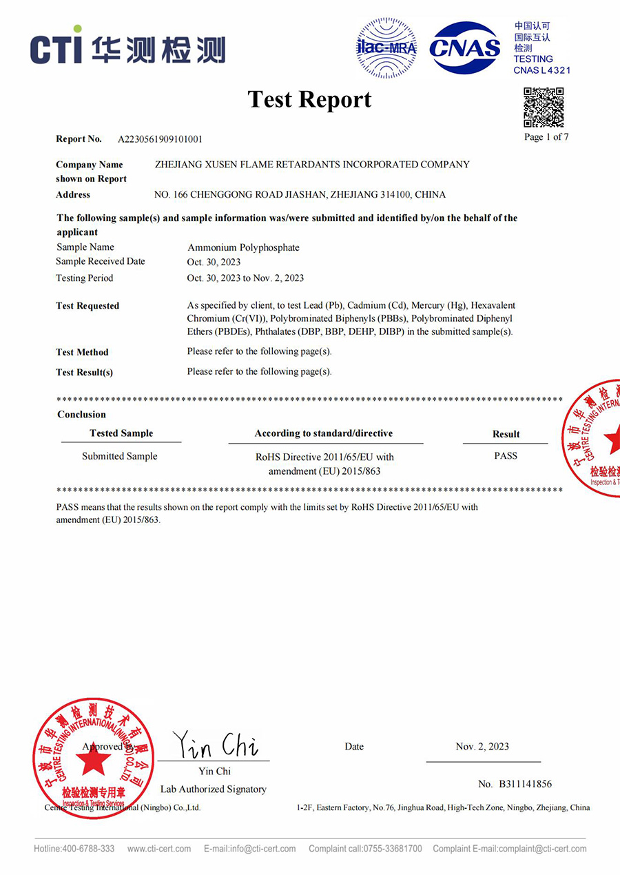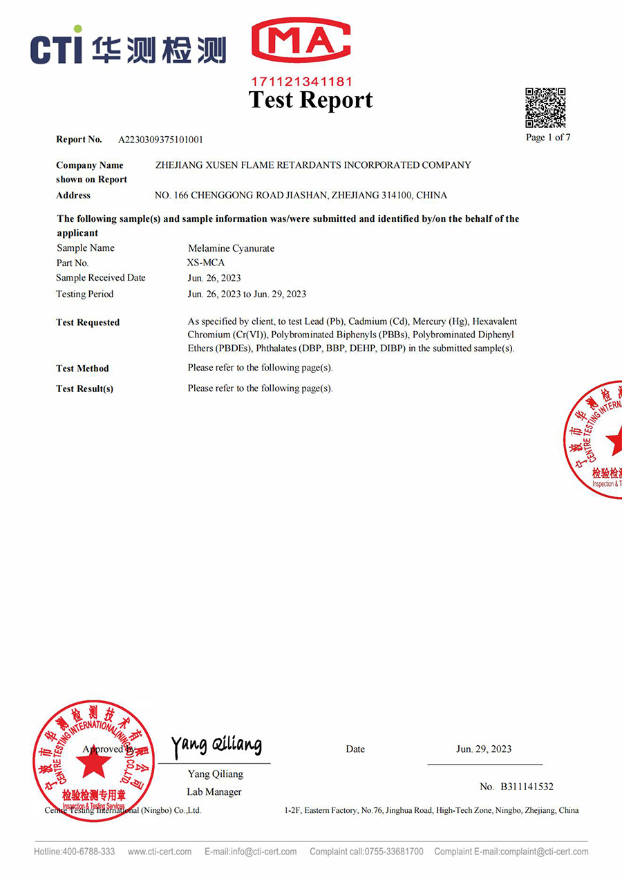 Retardante de llama para el informe de prueba de poliolefina ROHS
