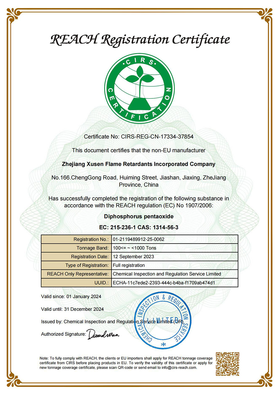 Certificado de registro de alcance de fosfato de hidrógeno de diamina