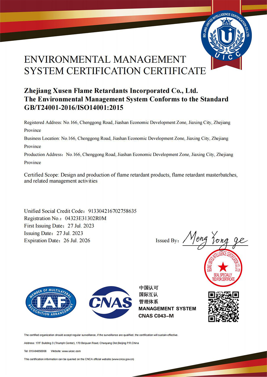 ISO14001_2015 Certificado del sistema de gestión ambiental