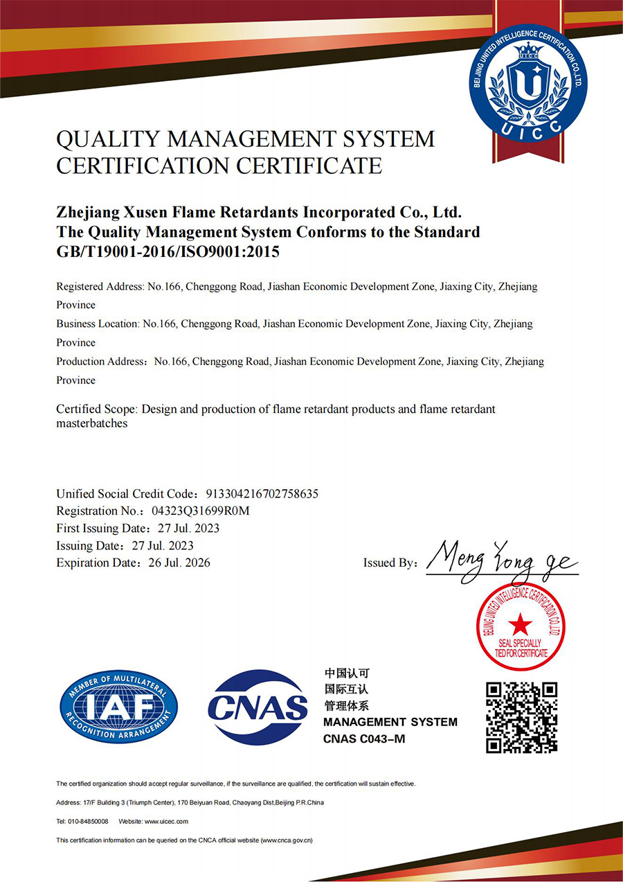 ISO9001_2015 Certificado del sistema de gestión de calidad_